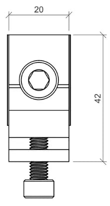 Deze aardklem verbindt de aardingskabel met de aluminium onderconstructie van het zonnesysteem. Hij wordt aan de montagerail bevestigd en fixeert de groen-gele aardingskabel met een schroef en klemplaat. Zo ontstaat een permanente elektrische verbinding tussen de onderconstructie en de aardingselementen.